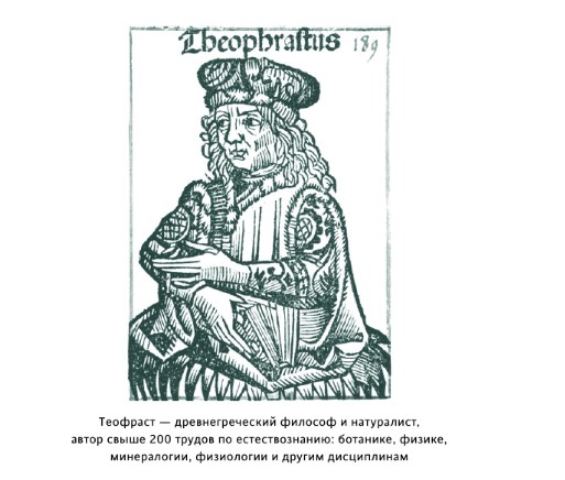 В первой дошедшей до нас минералогической «публикации» Теофраста «О камнях» (IV век до н. э.) описано всего-навсего 16 минералов.