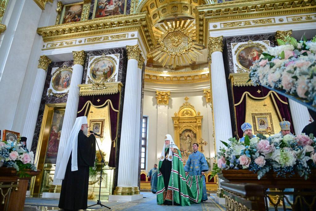 По окончании торжественного богослужения Святейший Патриарх помолился у Казанской иконы Божией Матери. Он поздравил всех православных с праздником Пресвятой Богородицы и отметил, что «Татарстан обладает уникальным опытом межконфессионального взаимодействия».