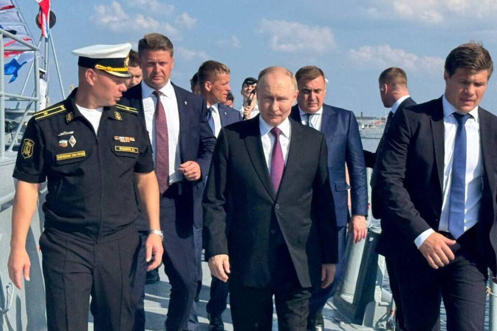 Путин с рабочей поездкой находится в Петербурге. Утром в воскресенье он на патрульном катере «Раптор» с бортовым номером 001 прибыл к зданию Адмиралтейства, где проверил по видеосвязи оперативные учения ВМФ «Июльский шторм», проходившие с 23 по 27 июля в акваториях Северного и Черного морей, Тихого океана, Балтики и Каспия. «ГлагоL» сообщал, что президент также заслушал доклады военных.